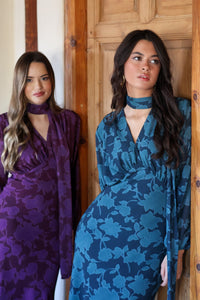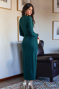 Su corte largo y fluido, junto con las mangas largas, lo convierten en la elección perfecta para ocasiones de otoño e invierno. Combínalo con accesorios dorados o nude para un look de impacto.