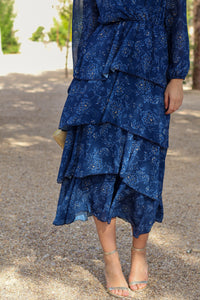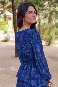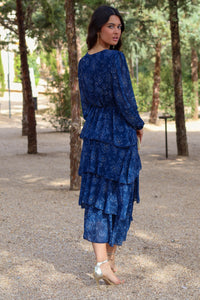 Un diseño con un aire bohemio y elegante, confeccionado en gasa fluida con un delicado estampado floral en tonos camel. Su escote cruzado realza el escote de forma natural, mientras que las mangas largas aportan ligereza y movimiento. La falda de capas asimétricas crea un efecto vaporoso que estiliza la figura y añade dinamismo al look. Incluye cinturón del mismo tejido para marcar la cintura y realzar la silueta.